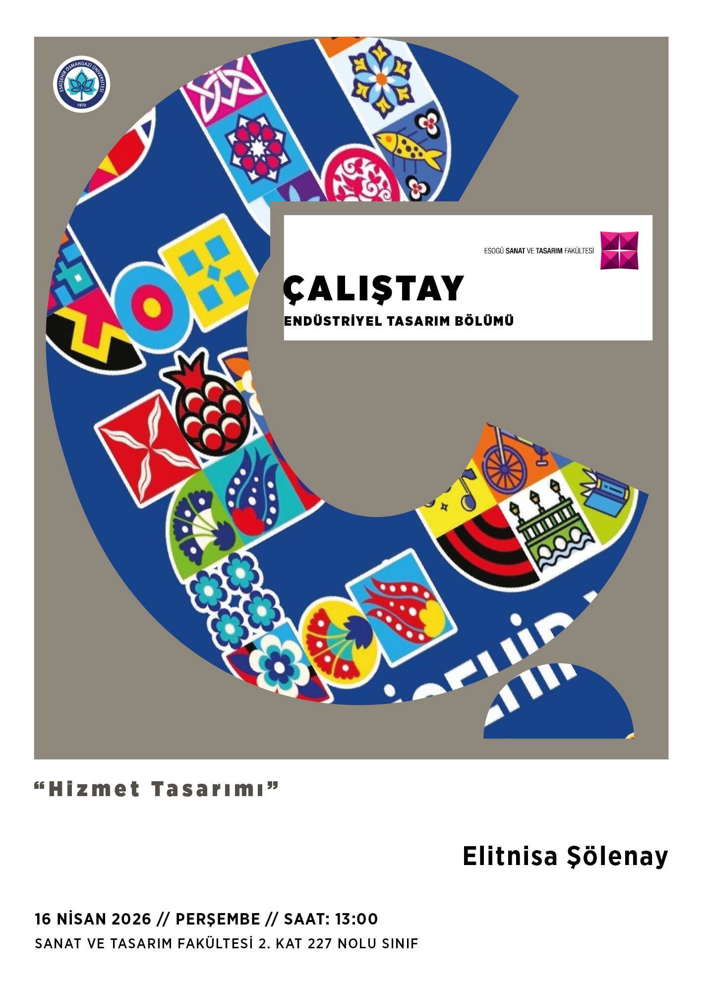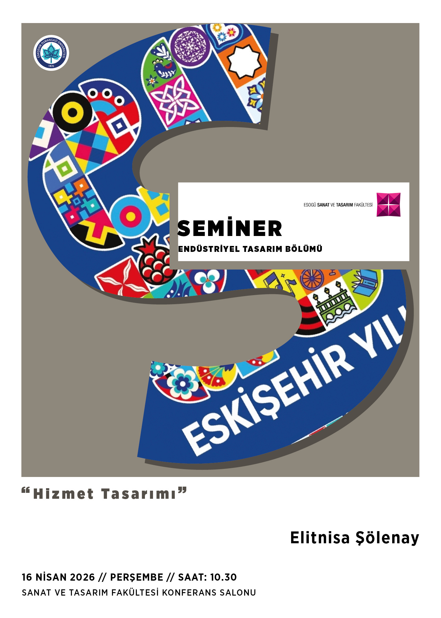 Endüstriyel Tasarım Bölümü tarafından düzenlenen "Hizmet Tasarımı" başlıklı çalıştayda Eskişehir Büyükşehir Belediyesi İklim Eylem Merkezinde Endüstriyel Tasarımcı olarak görev yapan Elitnisa Şölenay ile öğrencilerimiz hizmet tasarımı egzersizleri yapacaktır. Kontenjan Endüstriyel Tasarım 3-4. Sınıf öğrencileri ile sınırlıdır.