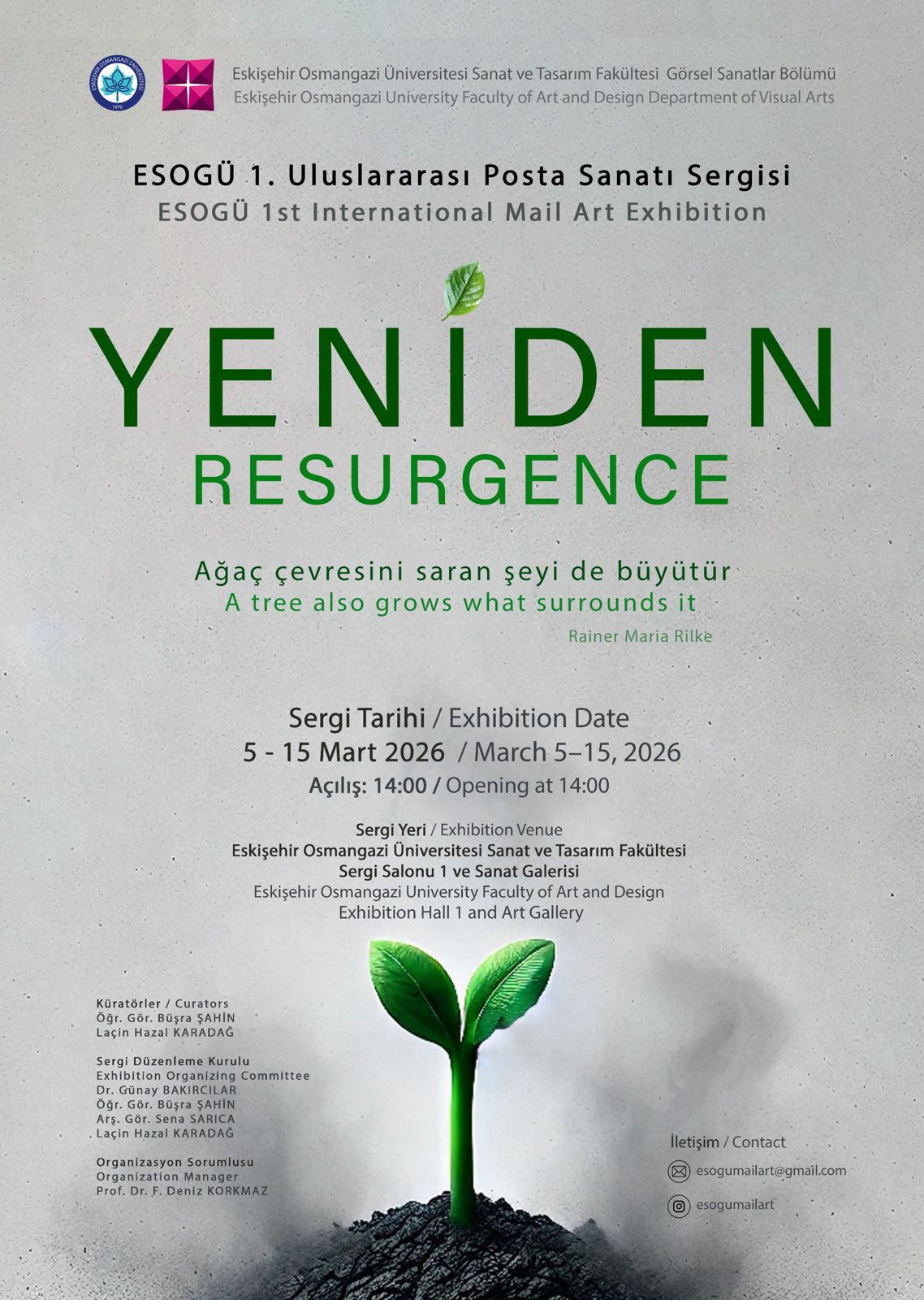 "YENİDEN" temasıyla düzenlediğimiz ESOGÜ 1. Uluslararası Posta Sanatı Sergisi'ne eserlerinizle sunduğunuz katkılar için teşekkür ederiz.