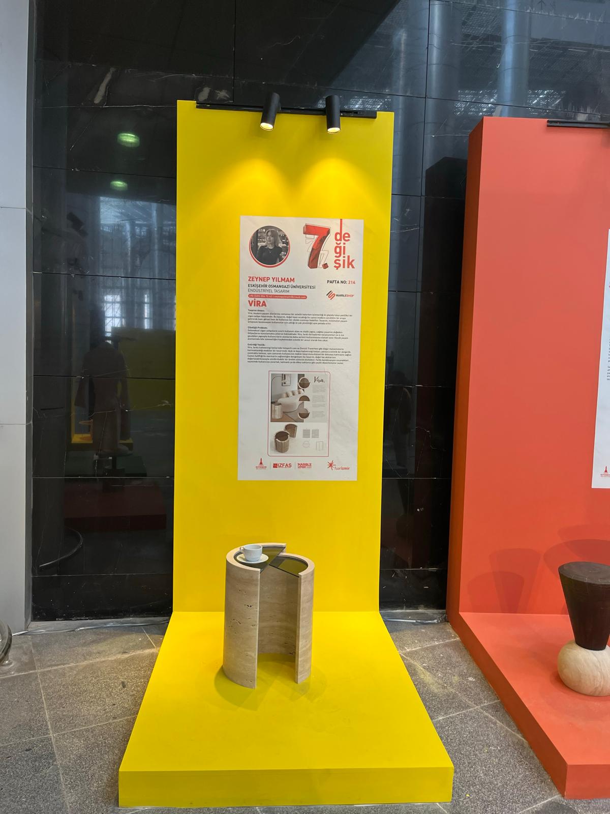 Endüstriyel Tasarım Bölümü 3. Sınıf öğrencilerinden Zeynep Yılmam, 7. Değişik Doğal Taş Tasarım Yarışması’nda üretim hakkı kazanarak finalist olmuş ve 09-12 Nisan tarihleri arasında Marble İzmir Uluslararası Doğaltaş ve Teknolojileri Fuarı’nda tasarımı üretilerek sergilenmiştir.