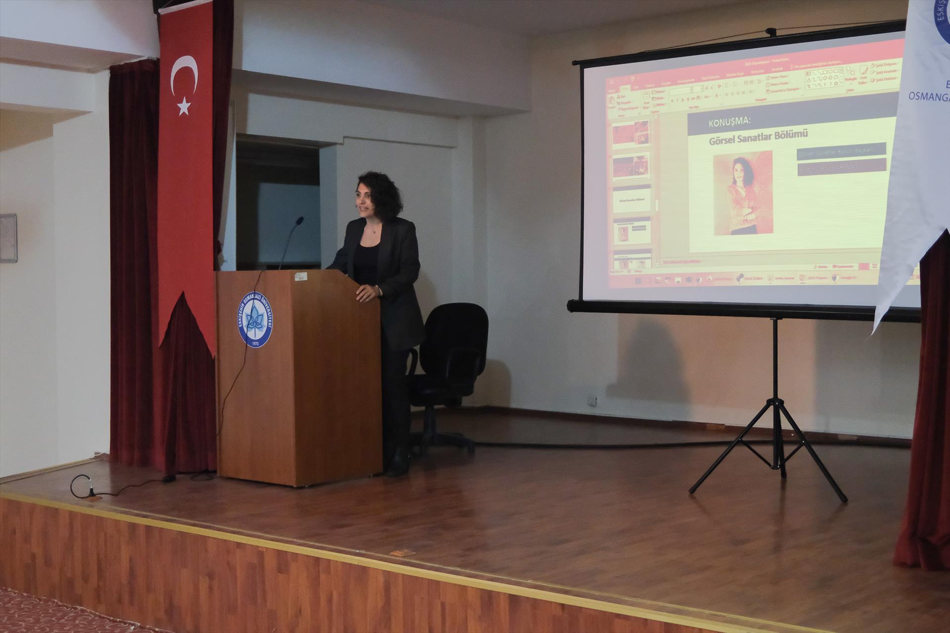 Fakültemizin üç bölümünü temsilen Görsel İletişim Tasarımı Bölüm Başkanı Doç. Emel Yurtkulu, Görsel Sanatlar Bölüm Başkanı Prof. F. Deniz Korkmaz ve Endüstriyel Tasarım Bölüm Başkanı Doç. Dr. Cemil Yavuz bölümlerine ilişkin tanıtımlarını gerçekleştirdiler.
