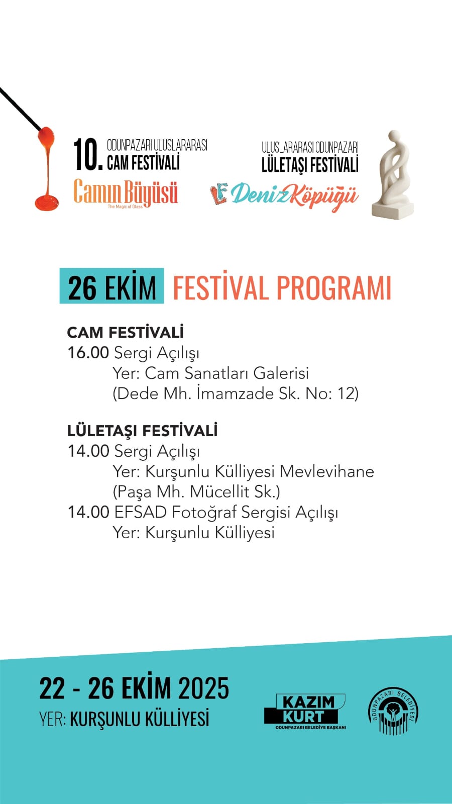 10. Uluslararası Cam Festivali ile eşzamanlı gerçekleşen Uluslararası Odunpazarı Lületaşı Festivali, Odunpazarı’nı sanat, zanaat ve kültürün buluşma noktası haline getirdi. Her iki festivalde de sanatçılar çalışmalarını tamamladı. Uluslararası Odunpazarı Lületaşı Festivalinde sanatçı ve öğrenciler tarafından üretilen eserler ile EFSAD’lı fotoğrafçıların çektiği fotoğrafların olduğu serginin açılışı 26 Ekim Pazar günü saat 14.00’de Kurşunlu Külliyesi Mevlevihane’sinde yapıldı.
